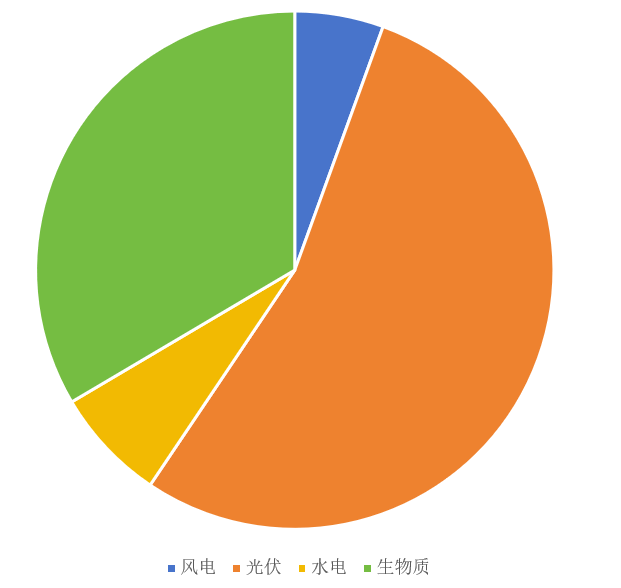 2、可再生能源發(fā)電裝機(jī)容量結(jié)構(gòu)(風(fēng)電+光伏發(fā)電+水電+生物質(zhì)發(fā)電)